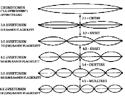 Rena intervaller är heltalsdelningar (jämna bråkdelar) av stränglängden - 1/2, 2/3, 3/4, 4/5, osv. De starkaste flageoletterna på en gitarrsträng - vid 12:, 7:e, 5:e och 4:e banden - ligger precis på dessa